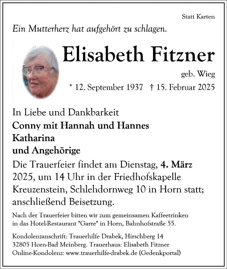 Elisabeth Fitznergestorben am 15. Februar 2025