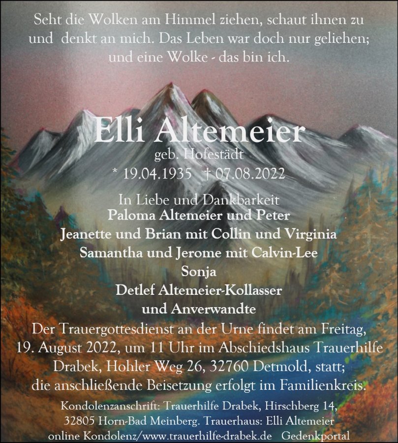 gerade hat mit meine Schwester Petra die Traueranzeige deiner Mutter geschickt.