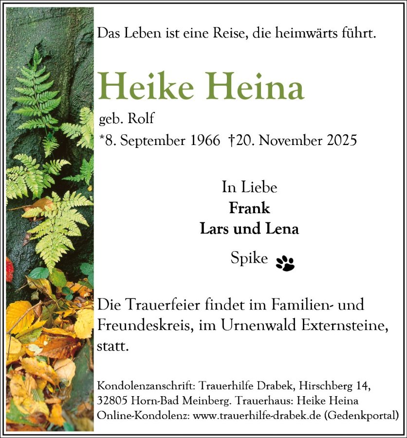 Heike Heinagestorben am 20. November 2025