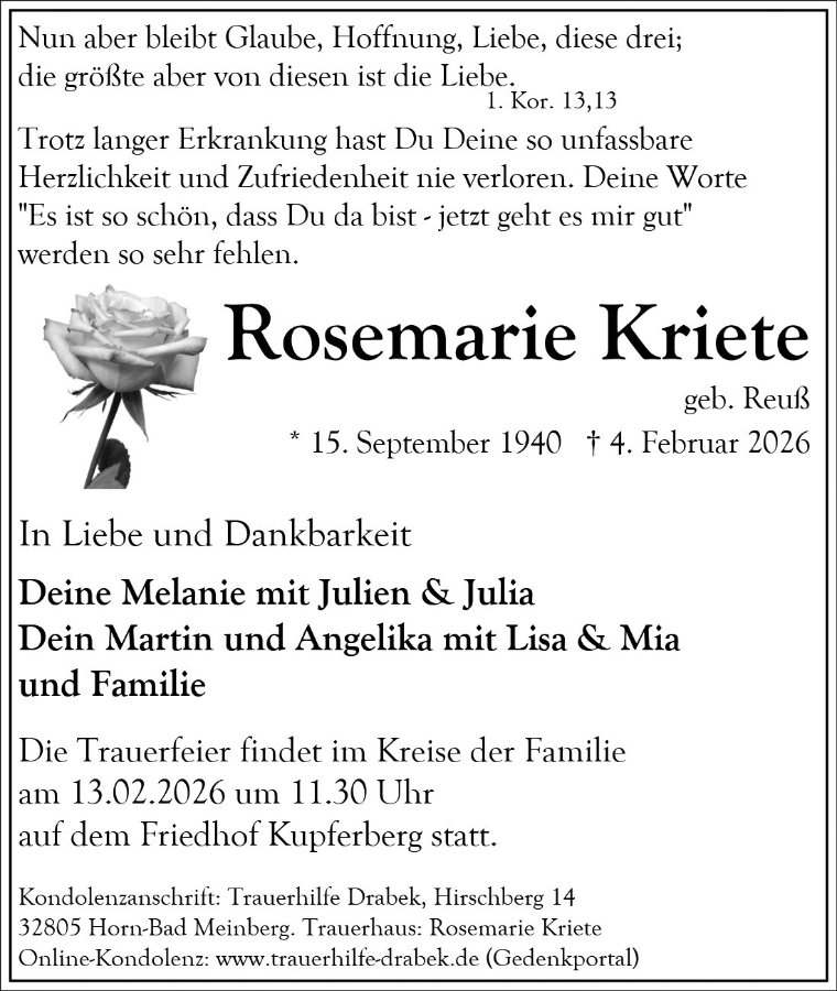 wir wünschen Ihnen für die kommende Zeit viel Kraft und dass es Ihnen gelingt, dankbar auf die positiven Erinnerungen zurückzublicken. Diese Gedenkseite möge Ihnen dabei helfen, Ihre Trauer zu teilen und das Andenken gemeinsam wachzuhalten.